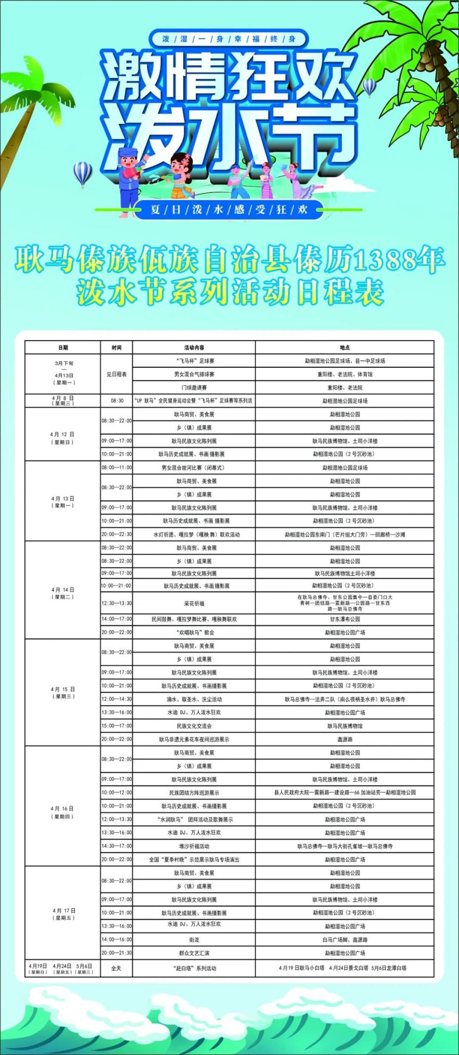 主要内容:傣历新年活动、龙舟表演、民族传统节目表演、民族传统赶摆等。
